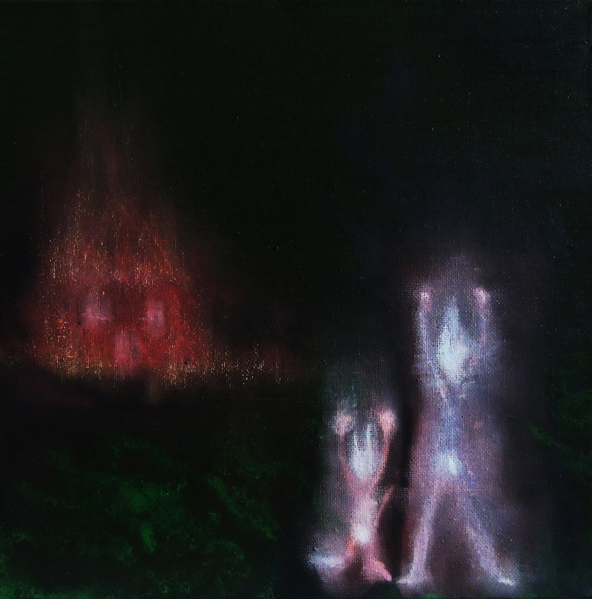 « INCENDIE » Craie, Acrylique sur toile, 27x27 cm __ VENDU